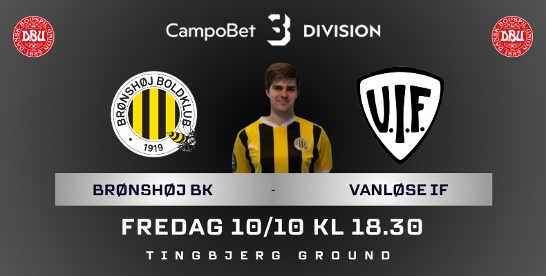 11.runde i dette års 3.division, står på et lokal opgør mellem Brønshøj Boldklub og Vanløse IF. Holdene ligger på nuværende tidspunkt side om side i tabellen, hvor Vanløse fik en noget bedre sæsonstart end hvepsene, men hvor hvepsene sidenhen er kommet godt efter det. Dermed er der lagt op til en super spændende fodboldkamp på Tingbjerg Ground fredag aften.